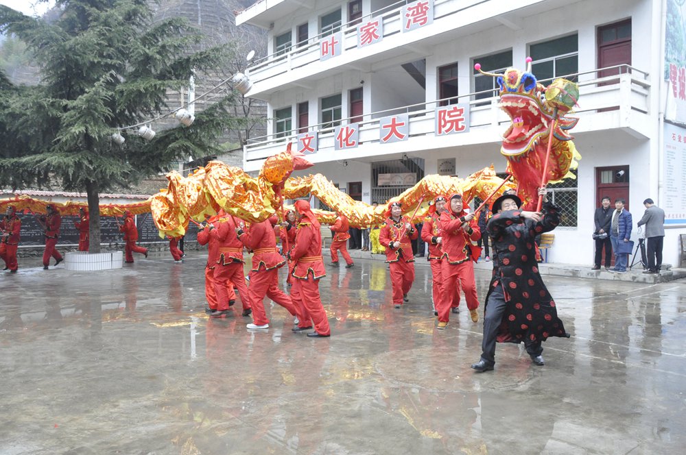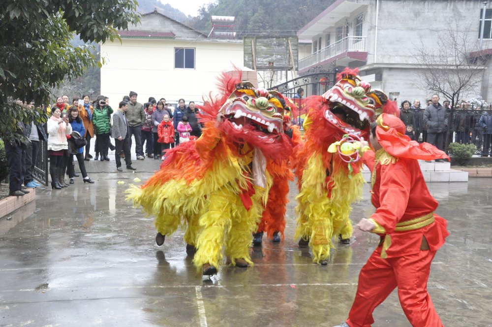 在文化大院里,他们为村民们安排了一场舞龙舞狮表演,让他们的新年过的热热闹闹。叶家湾舞狮表演之前中断了67年,从去年开始又开始重拾起这个传统文化,今天的节目分为四个板块,分别是双狮闹春,双龙贺岁,龙船报喜,以及天官赐福。