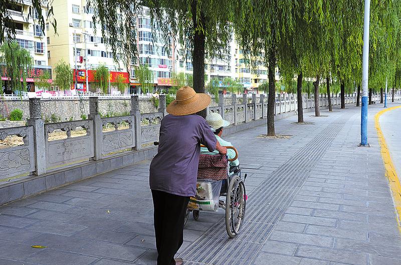 日落黄昏时,在柞水县城沿河长廊,总会出现这样的场景:一位满头白发的老人推着坐在轮椅上的瘫痪老伴,在浓密的柳荫下缓缓走着,伴随着录音机里播放的歌曲,像一张感动岁月的老照片,温馨而宁静。
