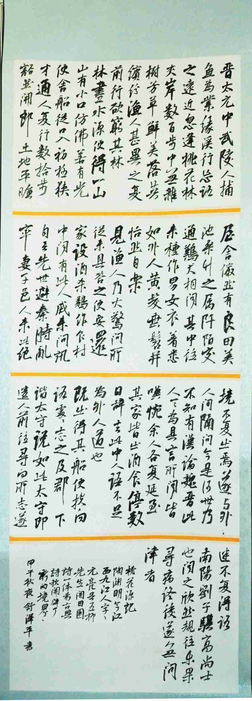 踏踏实实写字,堂堂正正做人。这是泽平一直秉承的理念。学书至今一直扎根晋唐,日日临池,心摹手追。以期在古碑帖中汲取营养充实、完善自己。观其作品没有狂躁,只有宁静,钻研古帖,力求创新。一路下来,少有波澜,也少使人惊奇,如溪流潺湲,跌宕多姿,志求高远,韵调雅正,尽其为修养和精神风貌!