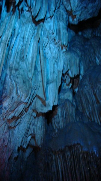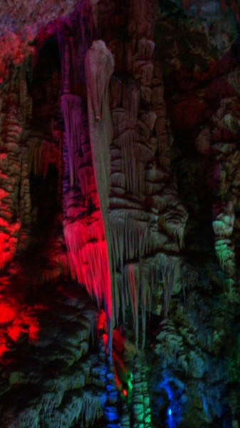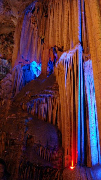整个游览时间不超过1h,实在是因为景区有点小。溶洞里很冷,幸好我有带外套,朋友一身夏天装扮,渗的够呛。溶洞里主要是石钟乳搭配着灯光,所以还算是漂亮。洞里随时都会有水滴落,石钟乳也是这样生长的吧。