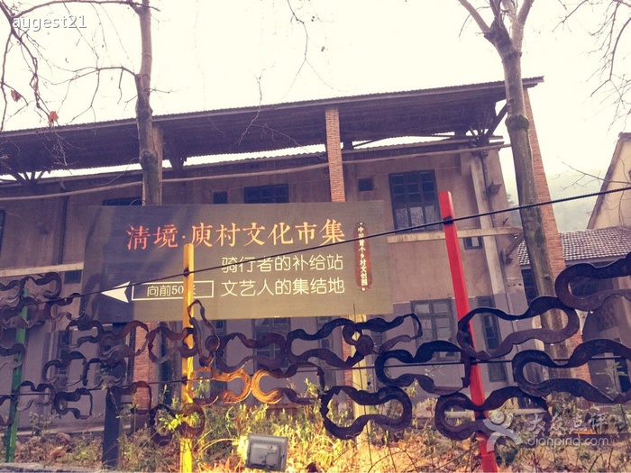 庾村是进入莫干山风景区的必经之地,庾村的庾姓就是南北朝时代著名文学家庾信的家族,庾姓人家聚居的村落被叫做了庾村。这里最大的特点就是将文化和旅游结合起来进行创意,提倡“融入环保理念改造农房”、“提倡绿色低碳生活方式”、“倡导无景点另类健康休闲理念”。走在庾村的街道上,阳光透过粗壮的梧桐树,洒在并不宽阔的道路上,给这小镇,增添几份幽深神秘的韵味。屋外随处可见的是,方正石头堆砌而成的围墙,山间绿竹扎成的凉棚或是构架,路面是河滩的石头,昔目的蚕种场一一步步蜕变成以休闲、创智、创业为目的的文化型集镇。沿着铁板制作的树叶形指路标志,走过枕木铺就的院落,便来到了一家咖啡馆。咖啡馆门口摆放着几个条桌,其实都是用几块旧门板拼成的,就连扣环还在上面。进入馆内给人第一感觉好像到了自行车展厅,再看看旁边摆满旧器物的吧台,才知道原来没有走错,这里就是通过一种独特的创意,把自行车博物与咖啡休闲联系在一起,营造了一种另类的圈子文化。此处虽无景点,但处处皆景,让人流连忘返。