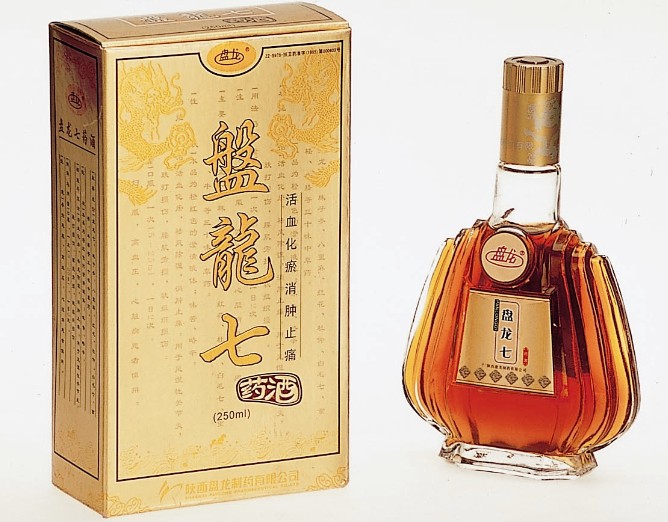 盘龙七药酒:盘龙七药酒是以盘龙七为主要成分的三十余种中草药精制的一种药酒,它具有活血化瘀祛风除湿消肿止痛。用于风湿性关节炎,跌打损伤,腰肌劳损,软组织损伤等,也是馈赠亲朋好友的上佳礼品。