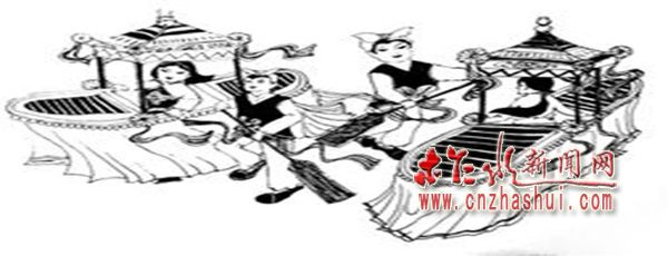 划旱船,民间传说是为了纪念治水有功的大禹的。划旱船也称跑旱船,就是在陆地上模仿船行功作,表演跑旱船的大多是姑娘。旱船不是真船,多用两片薄板,锯成船形,以竹木扎成,再蒙以彩布,套系在姑娘的腰间,如同坐于船中一样,手里拿着桨,做划行的姿势,一面跑,一面唱些地方小调,边歌边舞,这就是划旱船了。有时还另有一男子扮成坐船的船客,搭档着表演,则多半扮成丑角,以各种滑稽的动作来逗观众欢乐。划旱船流行于中国很多地区。