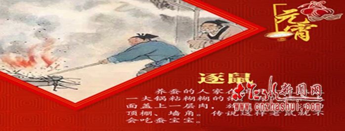 逐鼠是一项元宵节期间的传统民俗活动,始于魏晋时期。主要是对养蚕人家所说的。因为老鼠常在夜里把蚕大片大片地吃掉,人们传说正月十五用米粥喂老鼠,它就可以不吃蚕了。