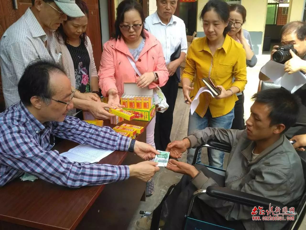 在简单的仪式过后,香港柔静太极拳研艺社的爱心人士现场为我镇20余名贫困残疾人发放轮椅、慰问金及保健药品。他们还为广大贫困残疾人士带来了鼓舞:虽然身体残疾,但是精神上一定要坚强,我们的国家会一直助力残疾人士就业创业,我们的社会将会更多的为残疾人士提供机会,希望大家以后越来越好!现场的群众纷纷被这次慈善公益行为所感动。
