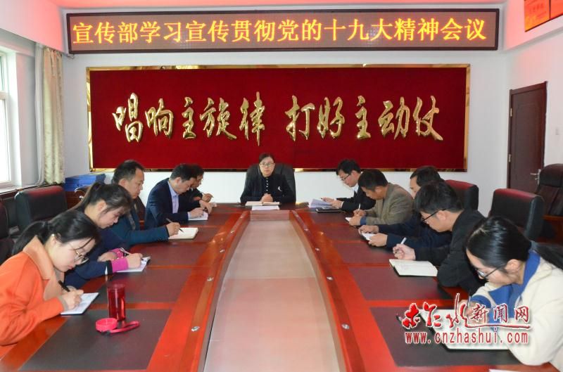 10月31日上午,省市宣传文化系统学习宣传贯彻党的十九大精神电视电话会后,柞水县委宣传部立即召开学习宣传贯彻党的十九大精神会议。县委常委、宣传部长王小宁主持会议并讲话。柞水县委宣传部全体干部职工参加会议。