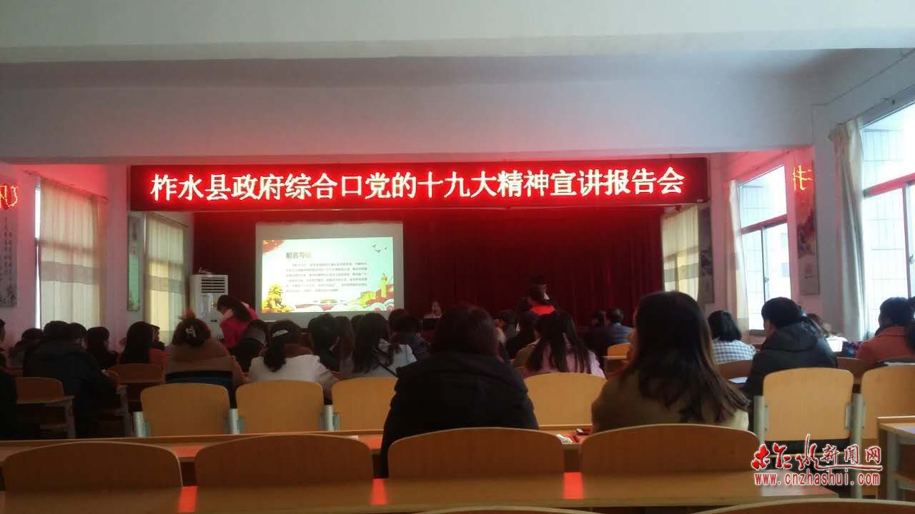 11月27日-28日,柞水县委党的十九大精神宣讲团深入到曹坪镇、红岩寺镇、瓦房口镇和杏坪镇宣讲党的十九大精神。镇机关全体干部和村(社区)两委班子成员参加了报告会。