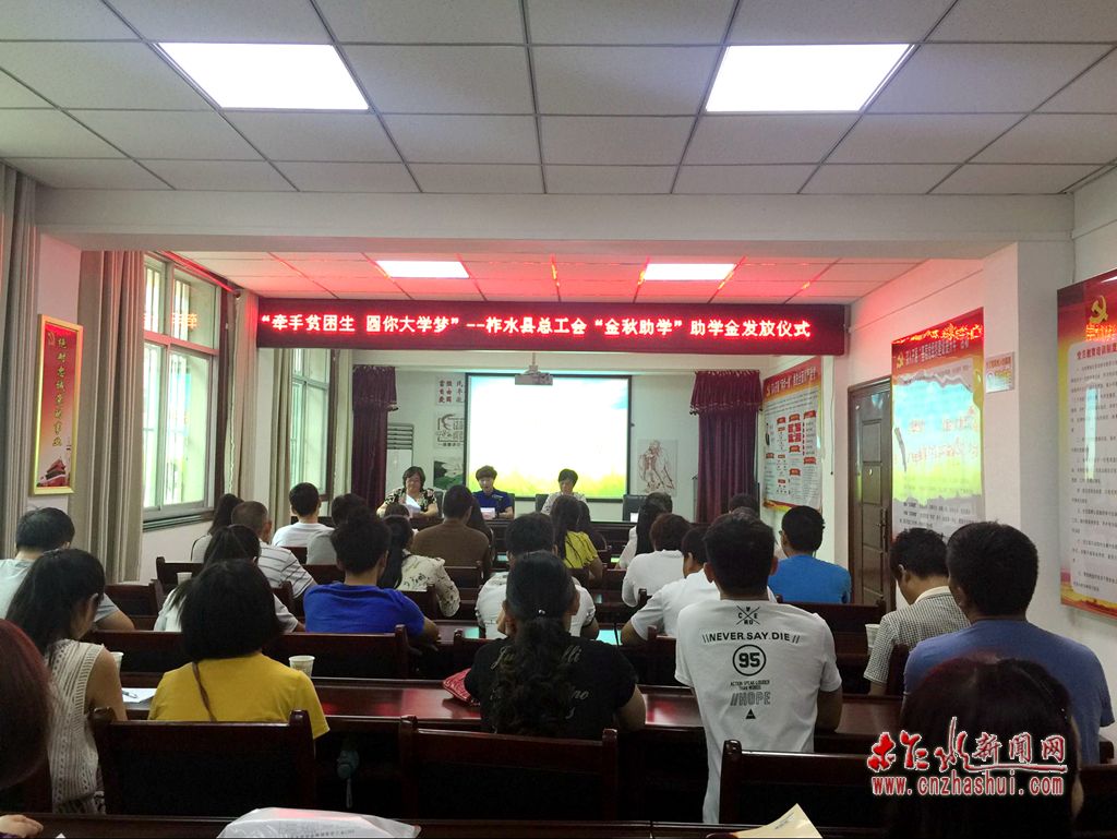 为帮助全县困难职工和困难农民工解决子女上学难的问题,柞水县总工会在全县范围内开展了“牵手贫困生 圆你大学梦”--“金秋助学”助学金发放活动。此次活动共计捐赠贫困生31名,发放助学款62000元。这项活动得到了全县职工和社会的广泛关注和主动参与,成为该县工会最具影响的公益活动之一,促进了全县各项事业的健康发展。