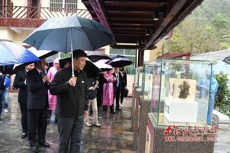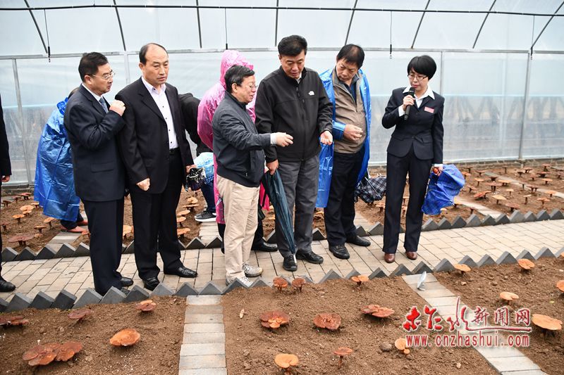 与会人员参观木耳小镇科技示范区、村集体经济吊袋木耳大棚区、农产品展销区、木耳博物馆