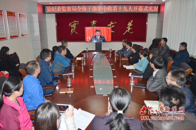 在机关单位,党员干部职工早早地聚集到会议室,等待着那一庄严时刻;在村、社区、学校企业、居民家中……党员干部群众纷纷围坐在一起,共同见证这一伟大的历史时刻,全县上下,处处洋溢着喜庆自豪的氛围。