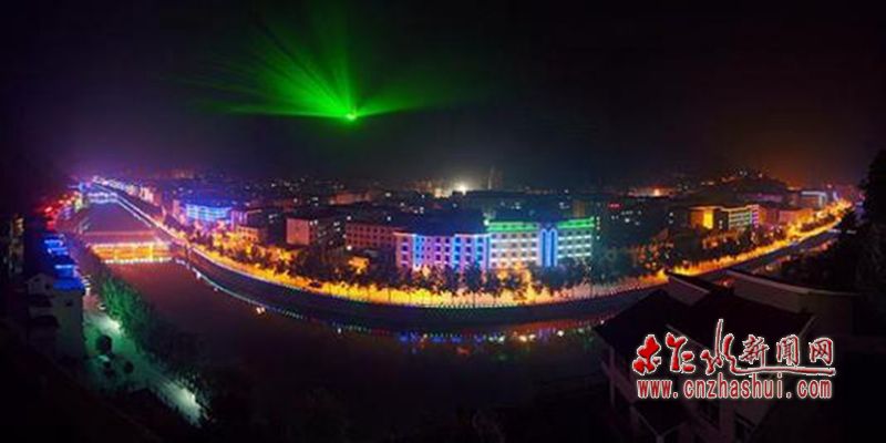 下山进城,我又看到“乾佑河”了,此刻的它,一改白日婉约,换上华美晚礼服,变成一个妖娆的贵妇。桥栏上灯光似镶嵌华衣的珠宝,和柳丛里的路灯齐明,还有城市楼宇里的灯光,飞光流彩,霓虹闪烁,所有美轮美奂倒映水中,水岸一色,相互争辉。站在桥上向上游看去,一道飞虹,横跨两岸,我兴奋地用手一指:“彩虹桥。”