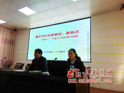 下午,城区第一小学教师陈晓芬为参会老师做了题为《携手同行在新教材、新起点——“部编本”一年级语文教材教学初探》的主题分享。陈晓芬老师就新教材的编写意图、教材体系、教材特点做了深入浅出的分析,并分享了自己教学新教材的好经验、新做法。